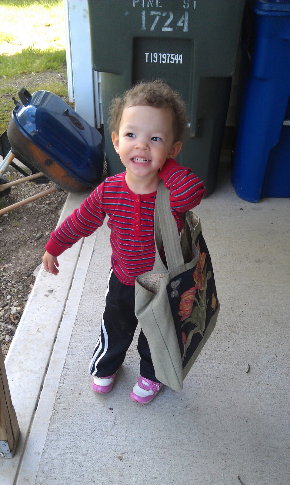 Next to the entire kitchen are a couple of grocery bags for her to use.